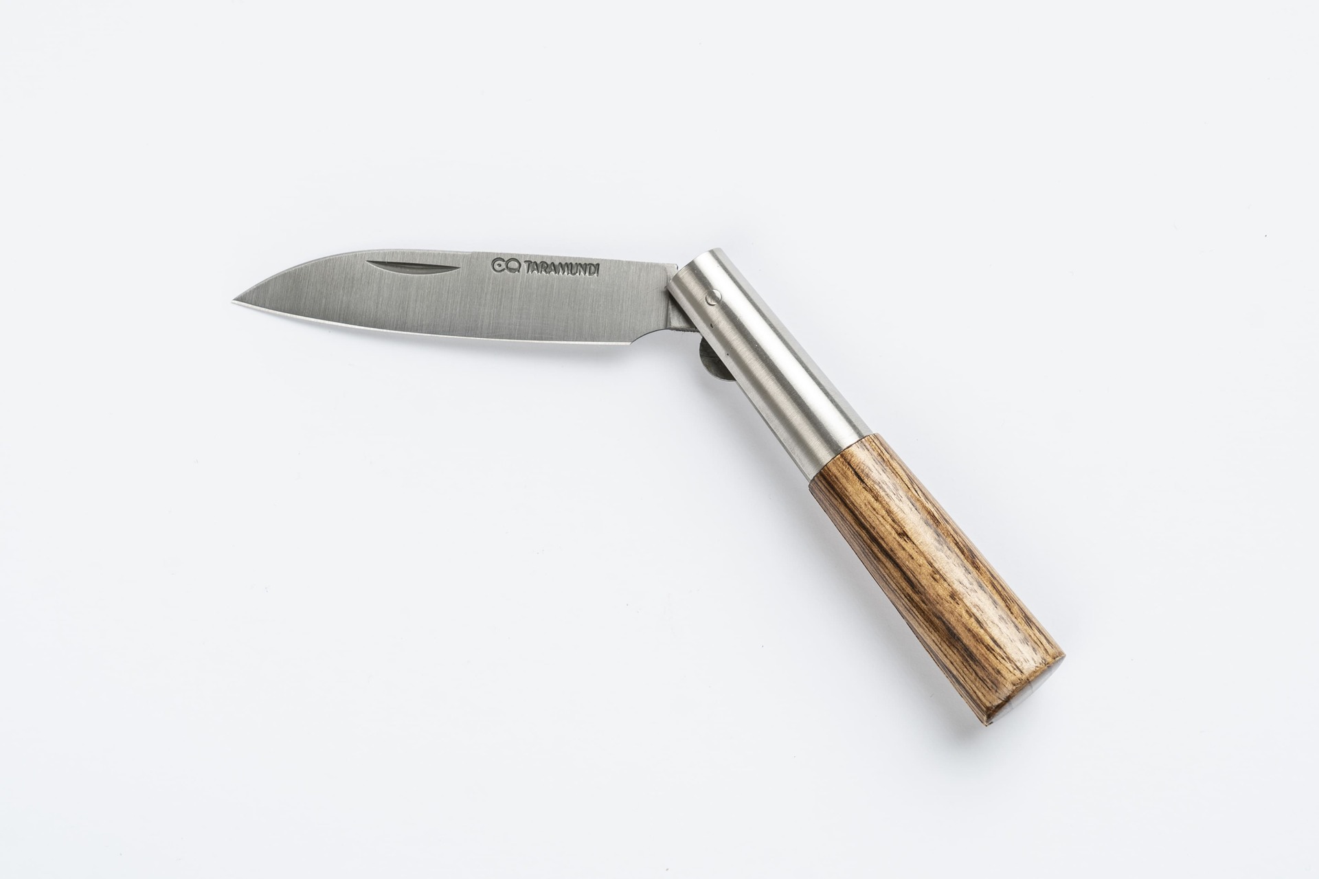 Artesano: Carlos Quintana Hoja: Acero inoxidable Mova (8,3cm) Virola: Acero inoxidable liso Empuñadura: Castaño Medida total: 18cm